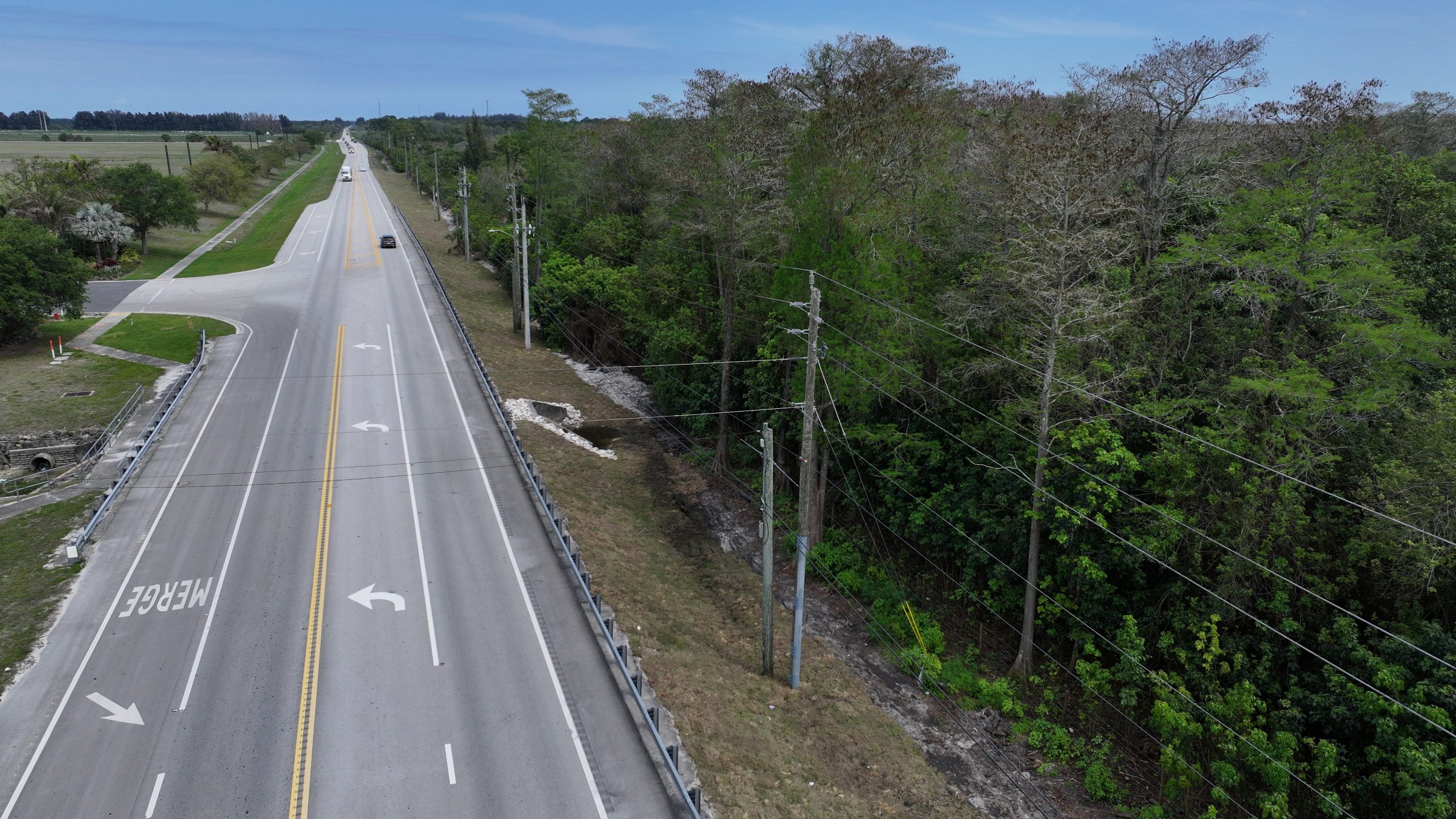 This project consists of stabilization of approximately 1,200 linear feet of road shoulder and adjacent ditch. The work for the project included MOT, clearing and grubbing, excavation, installation of Biodegradable Erosion Control Blankets (ECBs), and sodding to enhance maintenance capabilities and improve stormwater function.