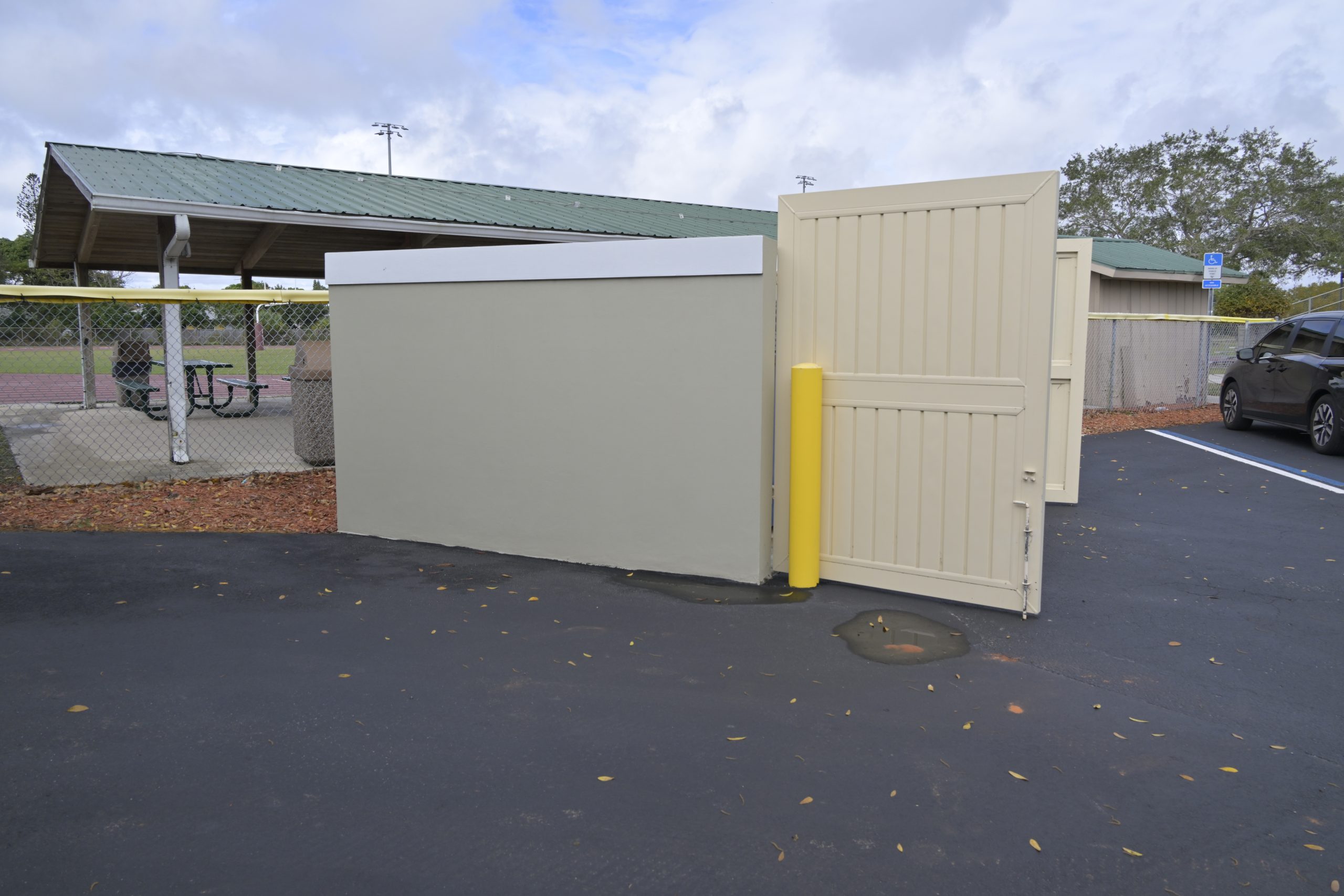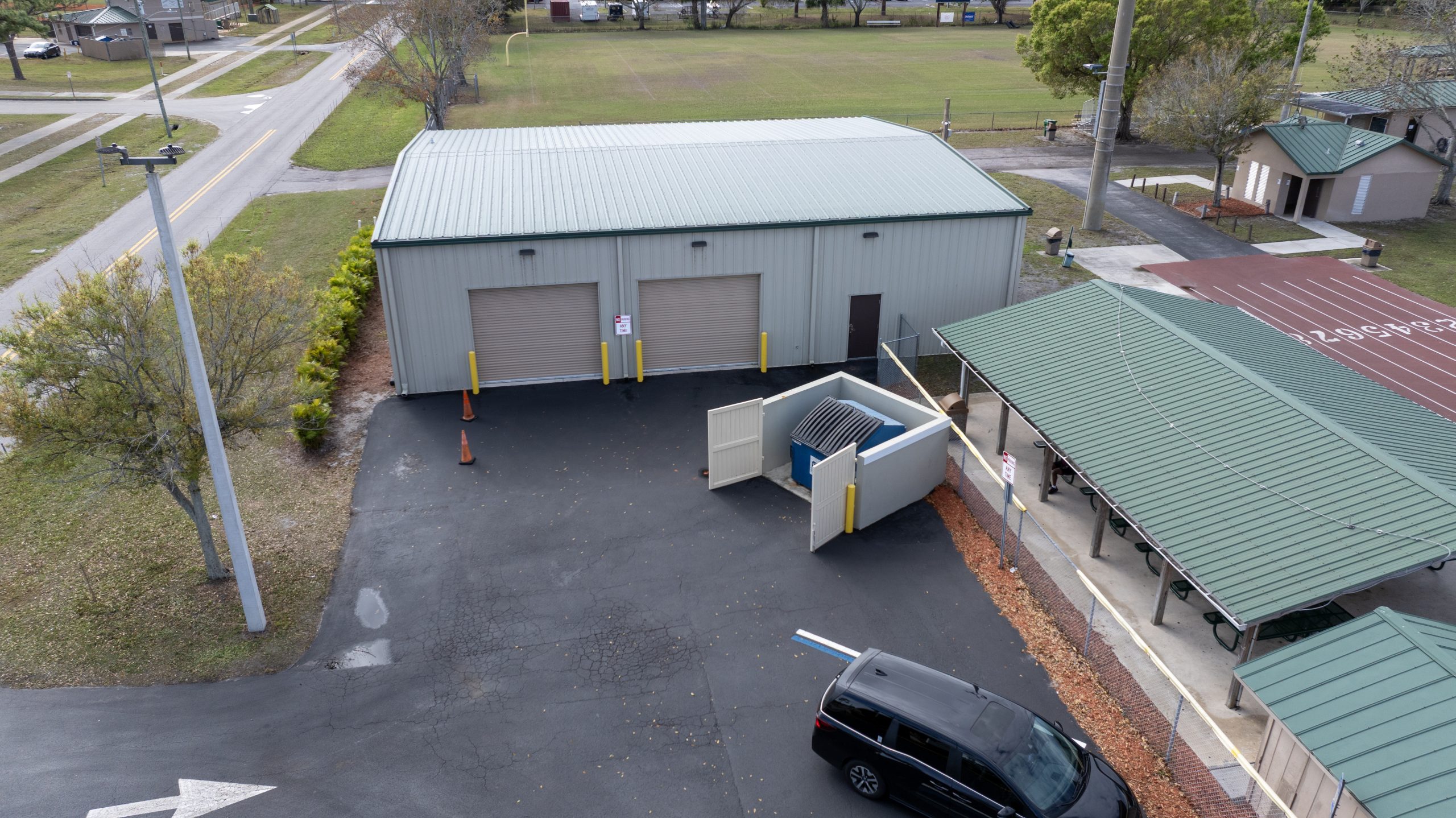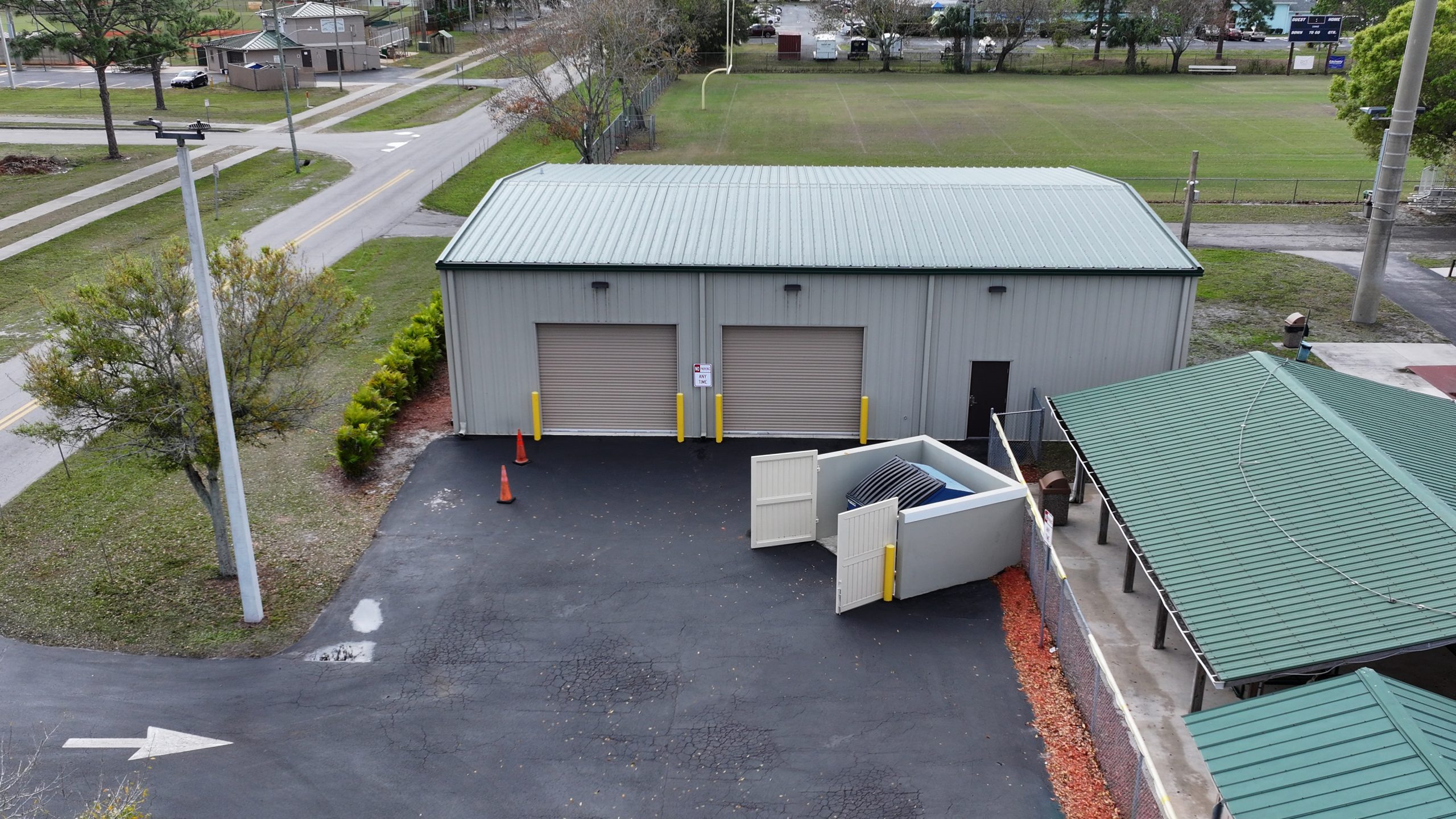 Constructed a new maintenance and storage building to support City parks operations. Work included demolition of existing asphalt areas, construction of a fenced storage yard, new dumpster enclosure, asphalt repairs, grading, sod installation, and irrigation system modifications.
