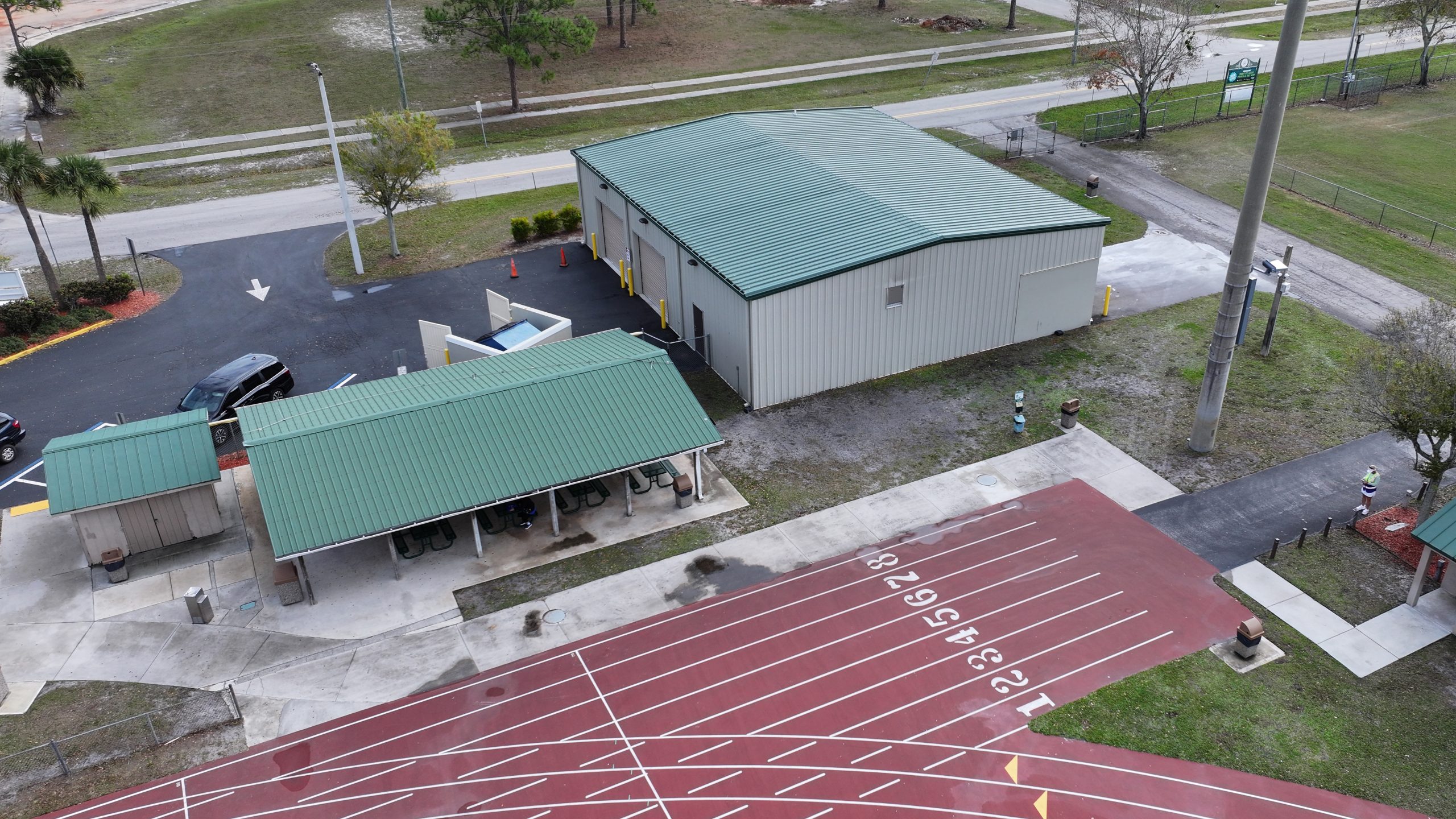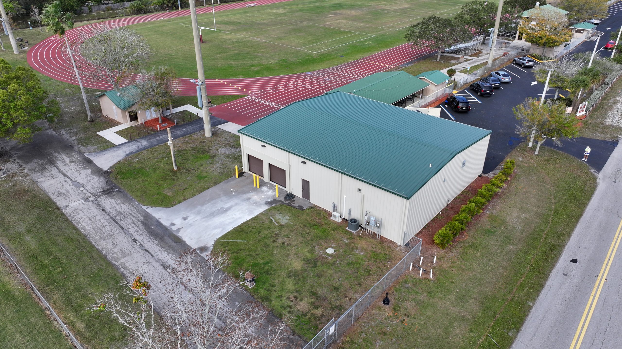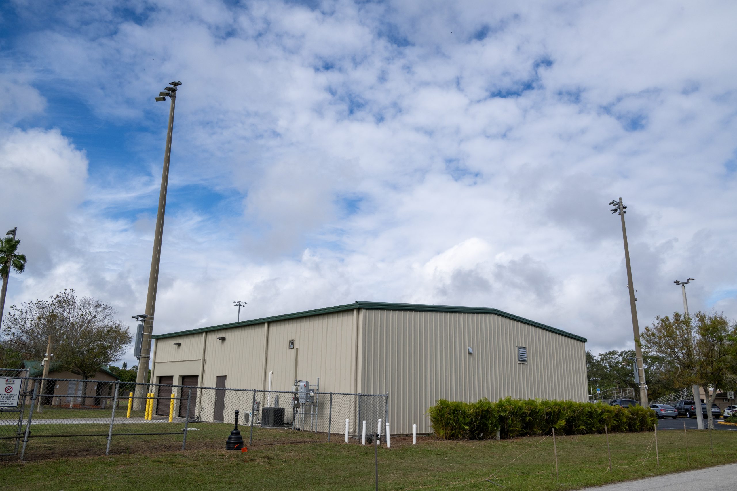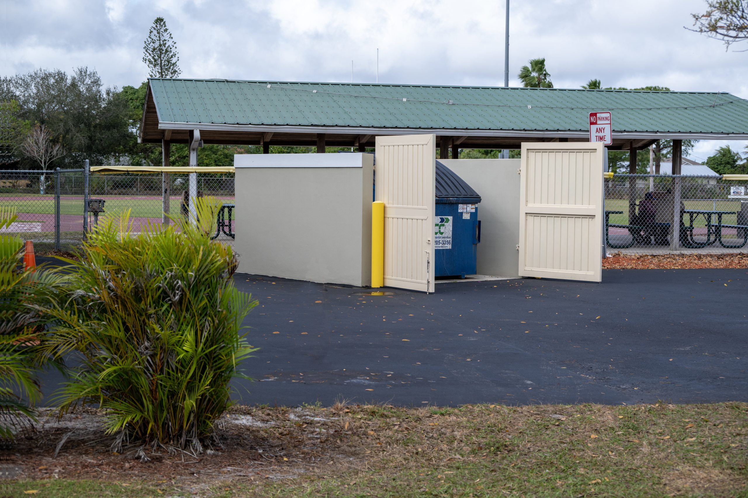Constructed a new maintenance and storage building to support City parks operations. Work included demolition of existing asphalt areas, construction of a fenced storage yard, new dumpster enclosure, asphalt repairs, grading, sod installation, and irrigation system modifications.